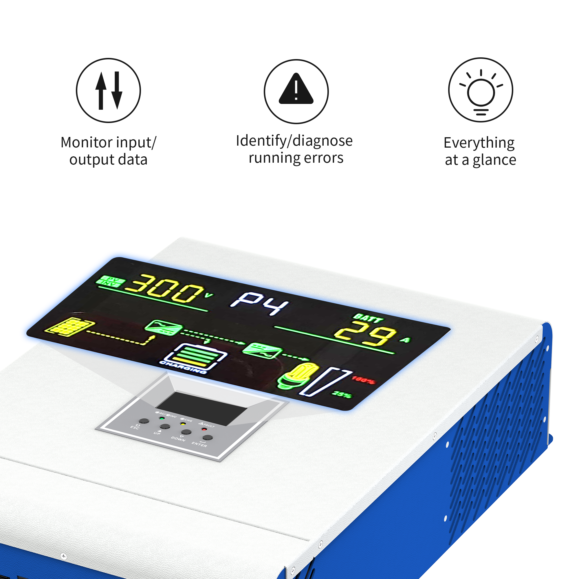 Experience the convenience of our dynamic LCD display. You can effortlessly monitor the power flow, troubleshoot errors, and stay in control. Whether you're keeping tabs on energy usage, diagnosing issues, or making adjustments, rest assured, everything will be always under control.