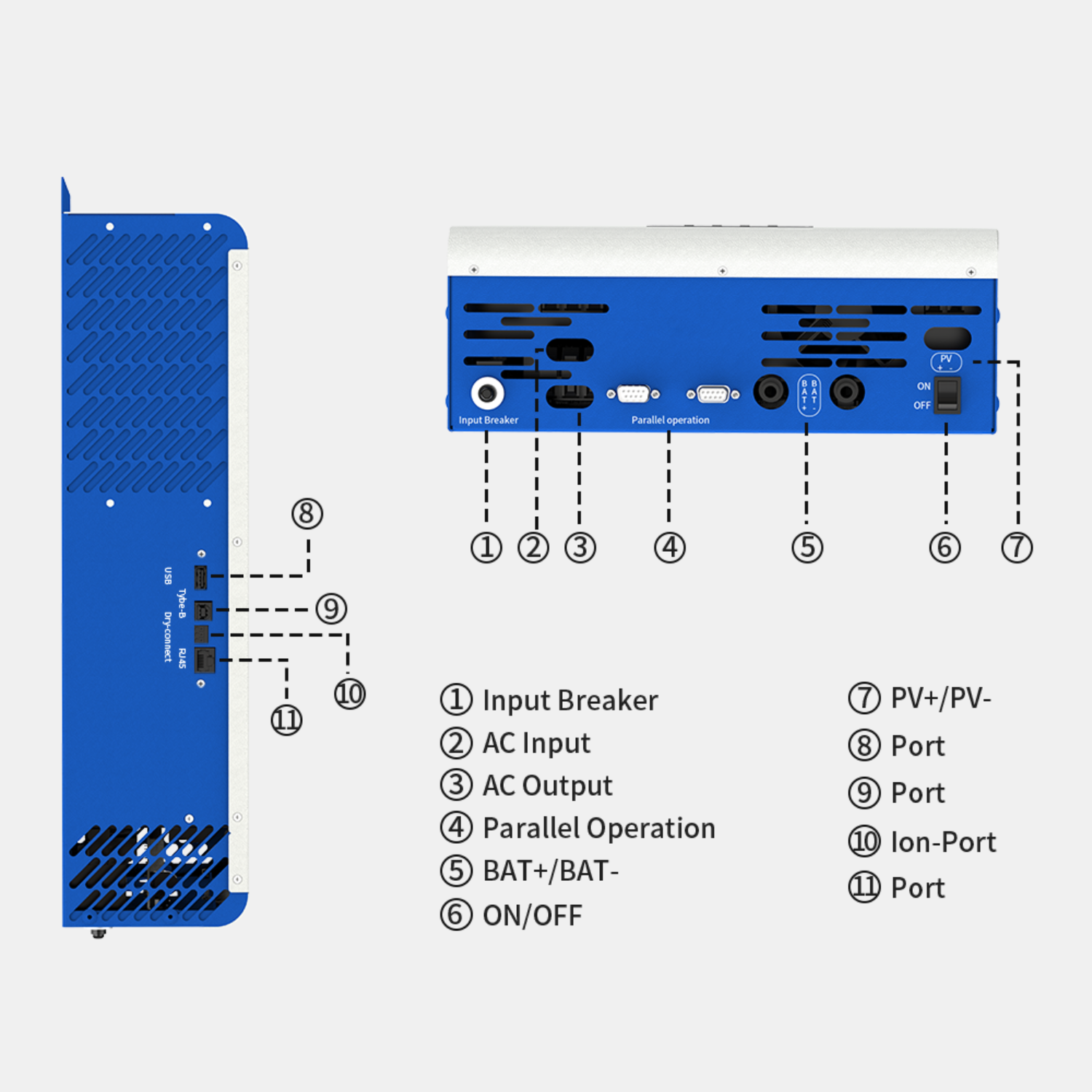| Interface | RS232, RS485, CAN, Dry Contact, WiFi(optional) | RS232, RS485, CAN, Dry Contact, WiFi(optional) |