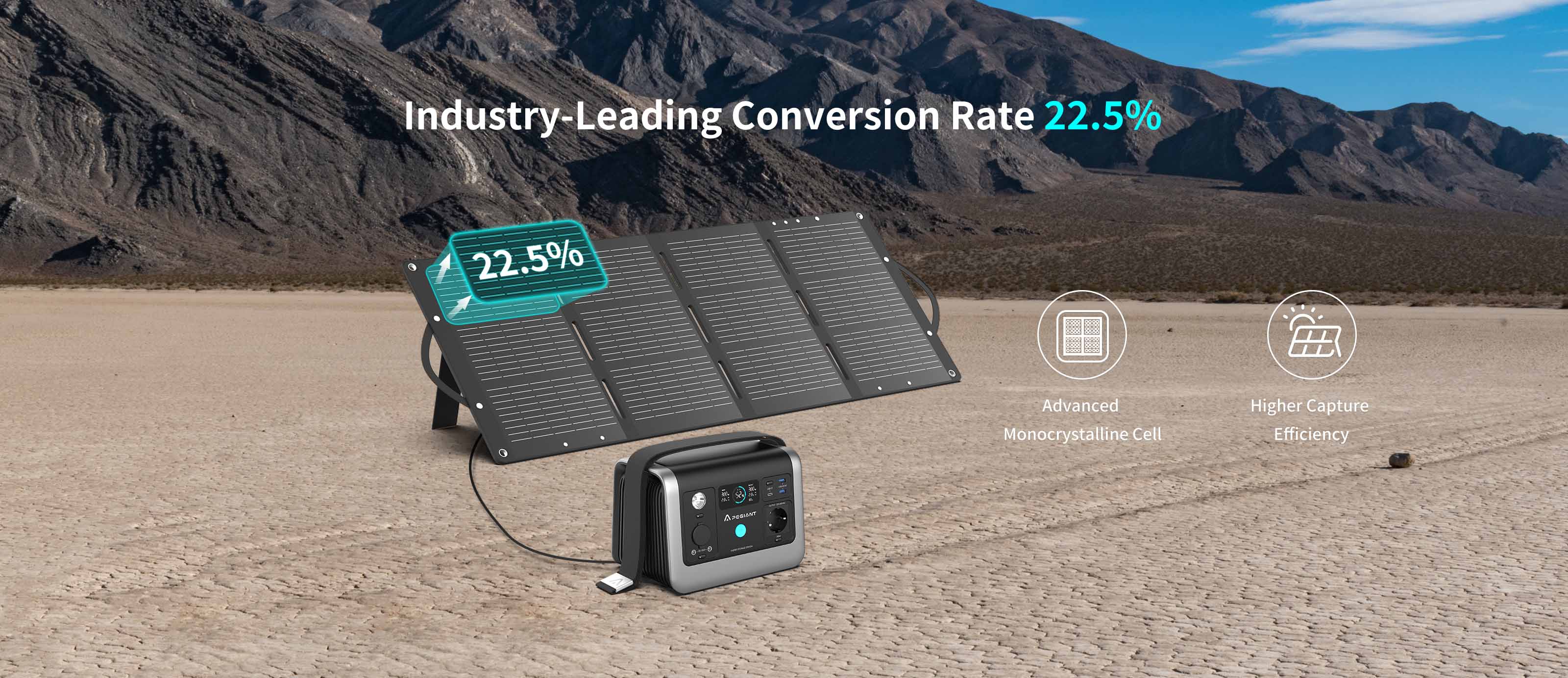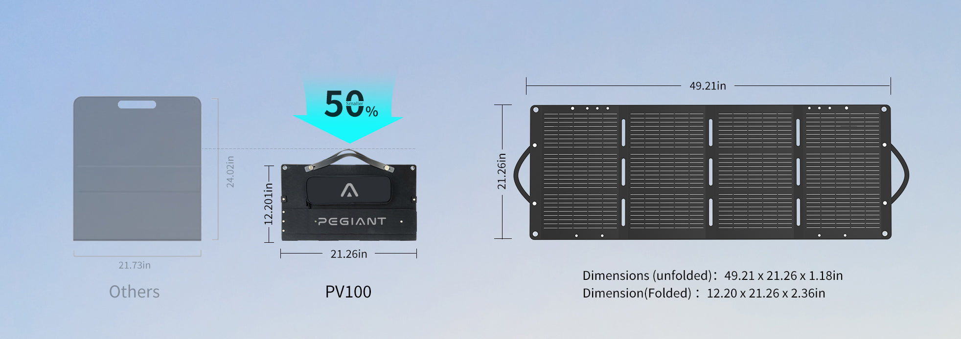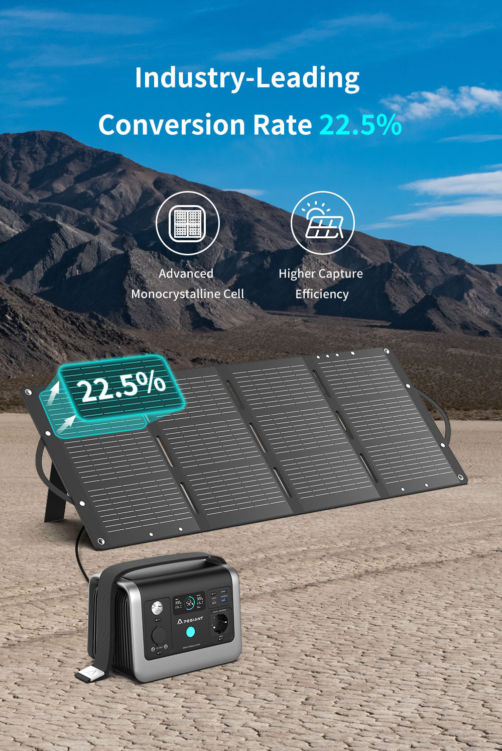 Made with monocrystalline solar cells, and a honeycomb light trapping design, the sunlight conversion rate of Pegiant MItos PV100 can reaching up to 22.5%. It also equipped with adjustable stands, makes it easy to adjust the angle and orientation at any time, ensures the maximized sunlight absorption.